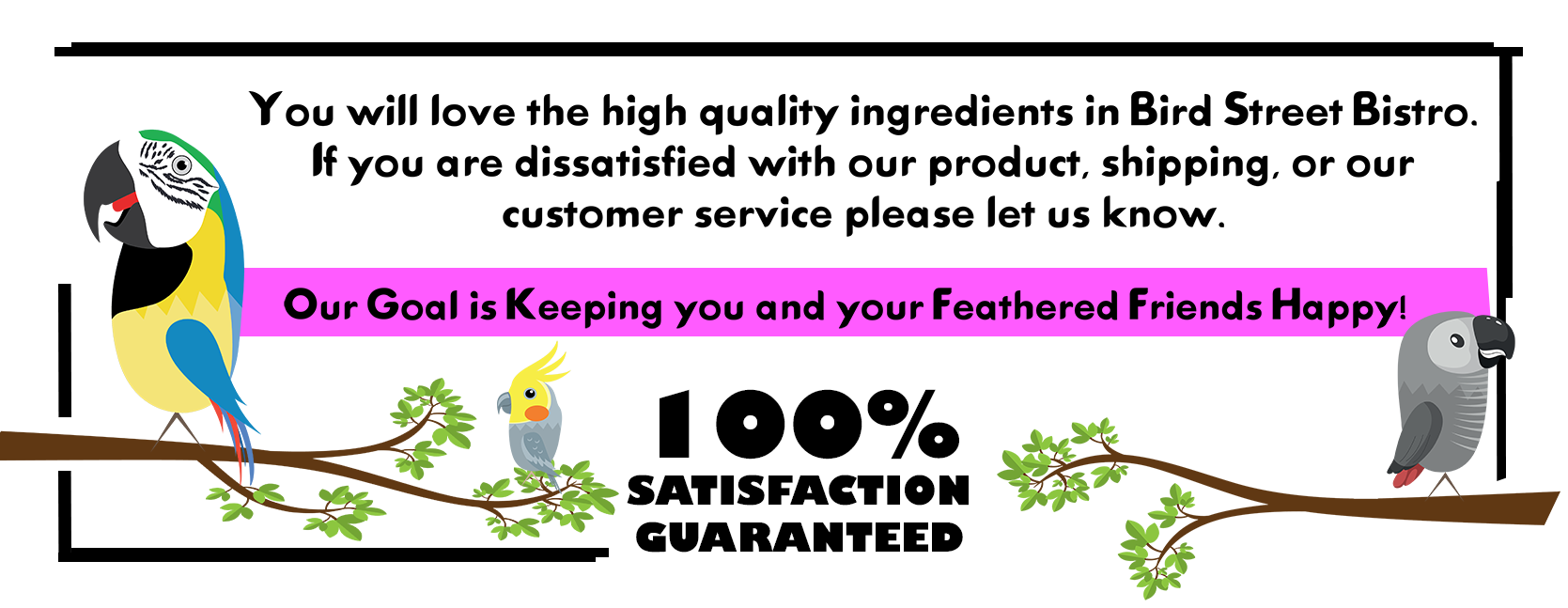 Thankfully, the parrots in our homes have it easier than their wild relatives. You can help provide your pet bird with healthy, fun ways to eat and forage with Bird Street Bistro's line of food products. Try our Cinnaspice Delight bistro mix with organic, all-natural ingredients and flavors that your bird will love!